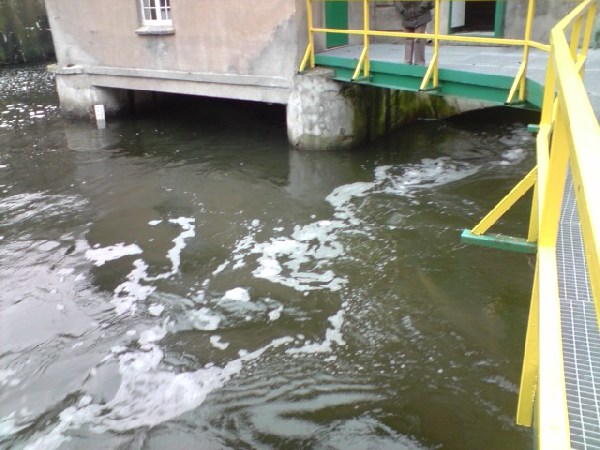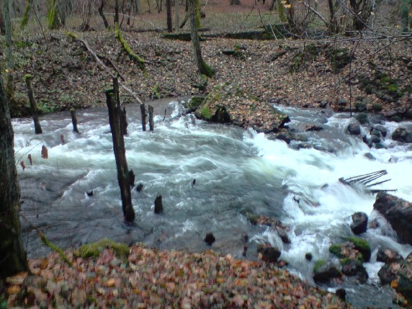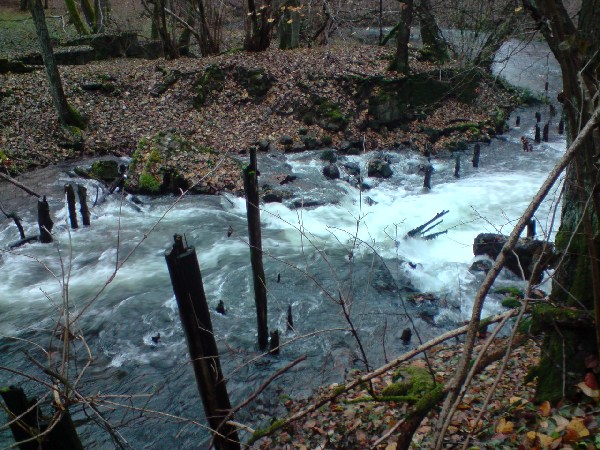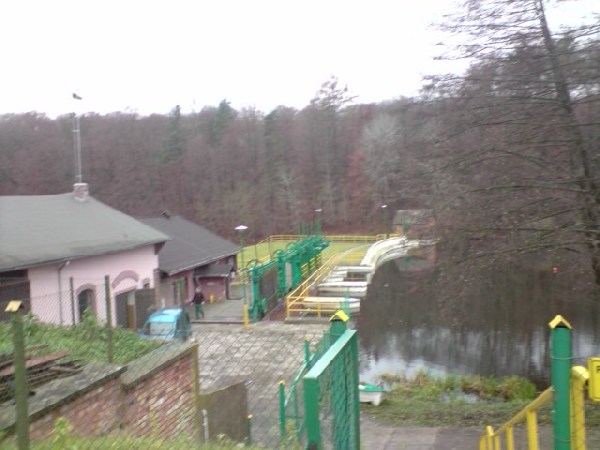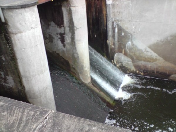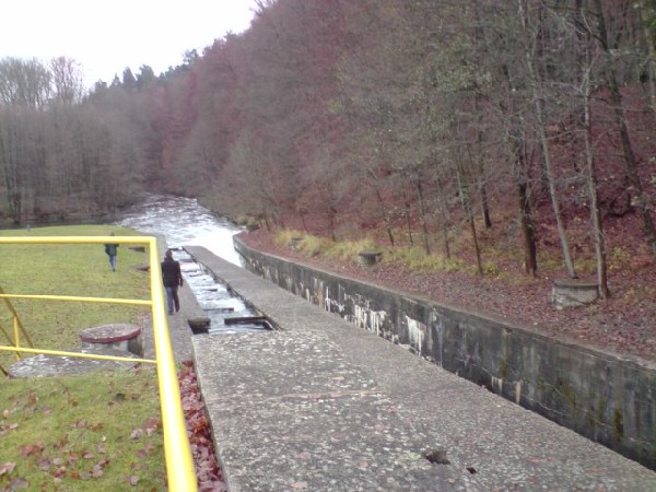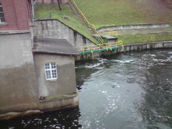 Nieczynna przepławka, chyba konstruktorzy coś skiepścili i nie chcą naprawiać. I rynna do spławu drewna (z prawej) aktualnie działała, ponieważ jedna z turbin akurat była odłączona i za dużo było wody.