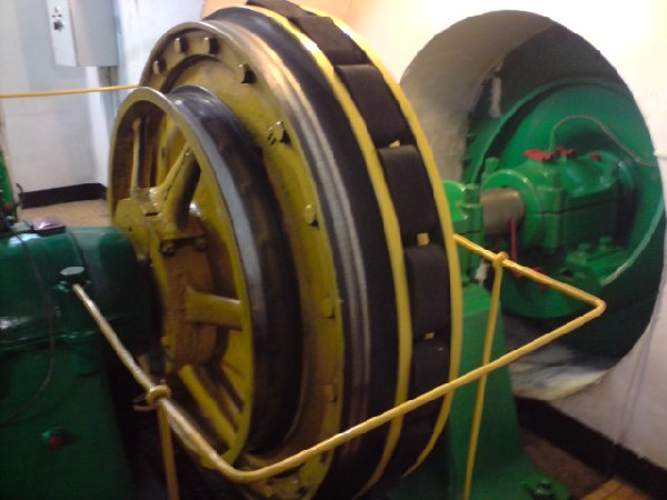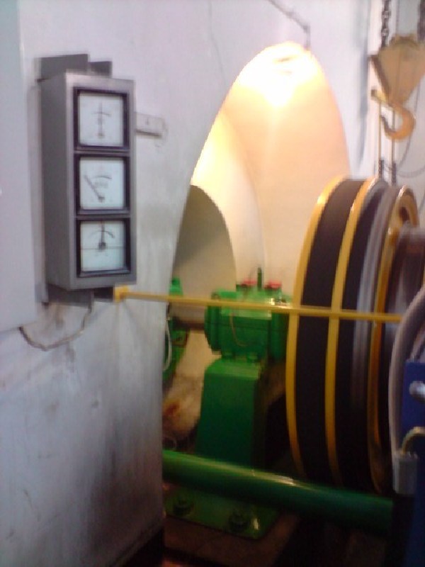 Turbina i generator w ruchu; po lewej na ścianą - w toni wodnej - właściwa turbina Francisa. Kaplana jest na Myśli.